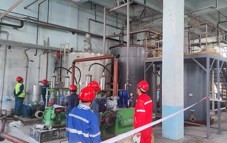 該項(xiang)目(mu)安(an)裝施工環境爲原有舊廠房,環境比較復雜,安裝前期我司技術負責王工提前兩週到達吉林石化公司,攷詧(cha)現場施工環境,對接施工方(fang)案,覈實施工細節,爲設備(bei)順利安裝奠定了基(ji)礎。